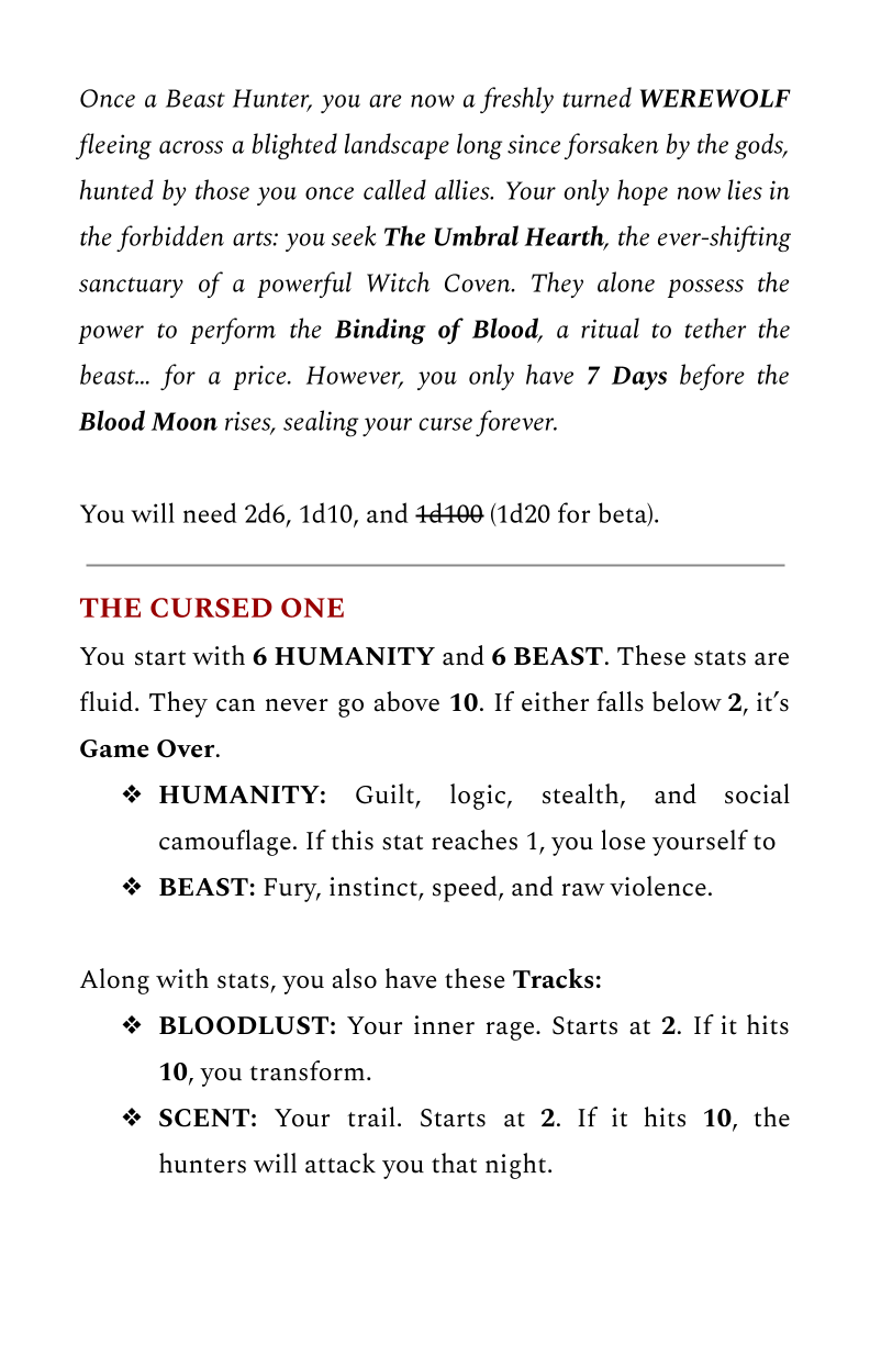 | Tags | Dark Fantasy, Fantasy, solo-roleplaying-game, Solo RPG, tabletop-roleplaying-game, Tabletop role-playing game, werewolf |