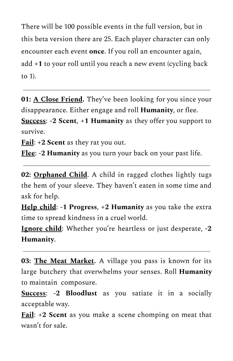 This game takes inspiration from Blades in the Dark, Betrayal at House on the Hill, Daggerheart, and probably other games I'm forgetting to list at the moment lol. Currently, this RPG consists of 4 pdfs - one of the rules, one of possible encounters, (the full game will have 100!), one character sheet, and one optional session log.